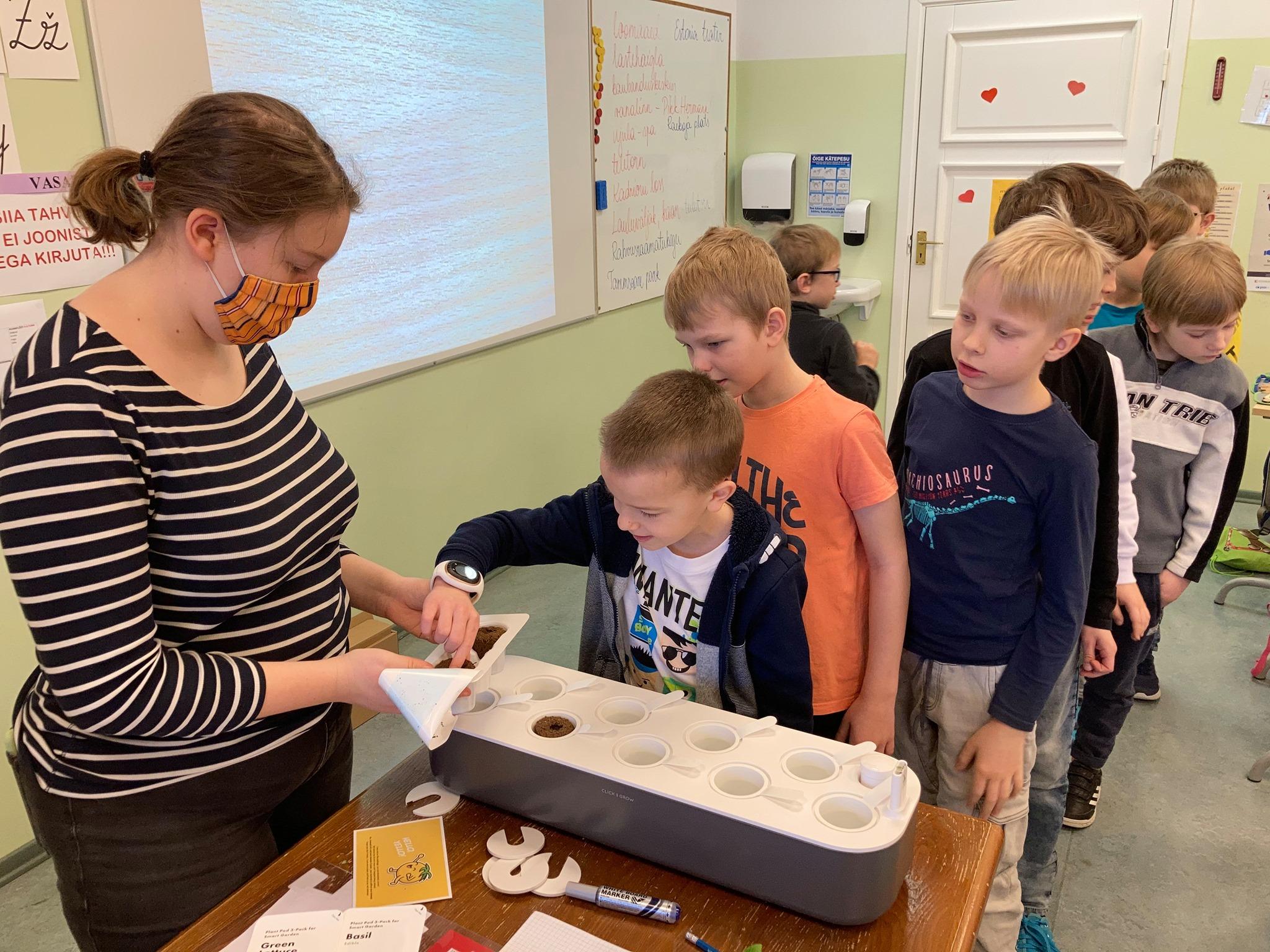 15. veebruaril alustas meie vabatahtlik Julia 2. ja 3. klassis taimekasvatusprojektiga, kus kasutati esmakordselt Click & Grow taimekasvatuskaste. Mõlemas klassis pandi kasvama 3 lehtsalati, 3 basiiliku ning 3 kollase kirsstomati taime.
